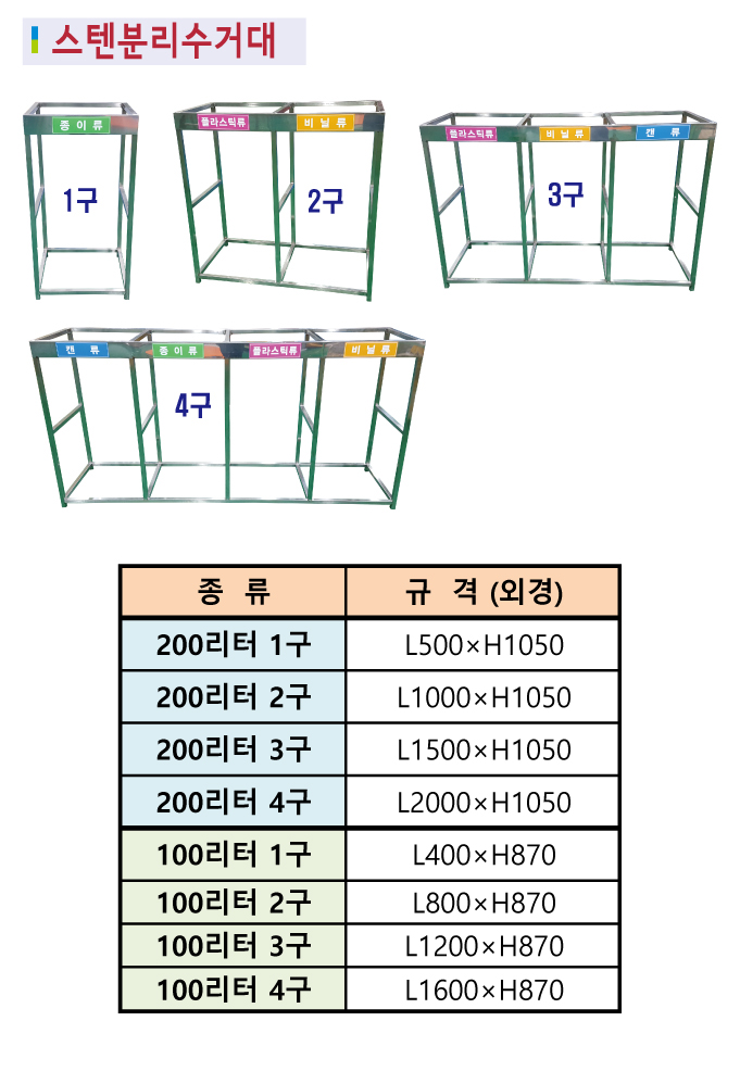 분류명칭종류: 일반쓰레기 / 캔.병류 / 종이류 / 재활용류 / 플라스틱류